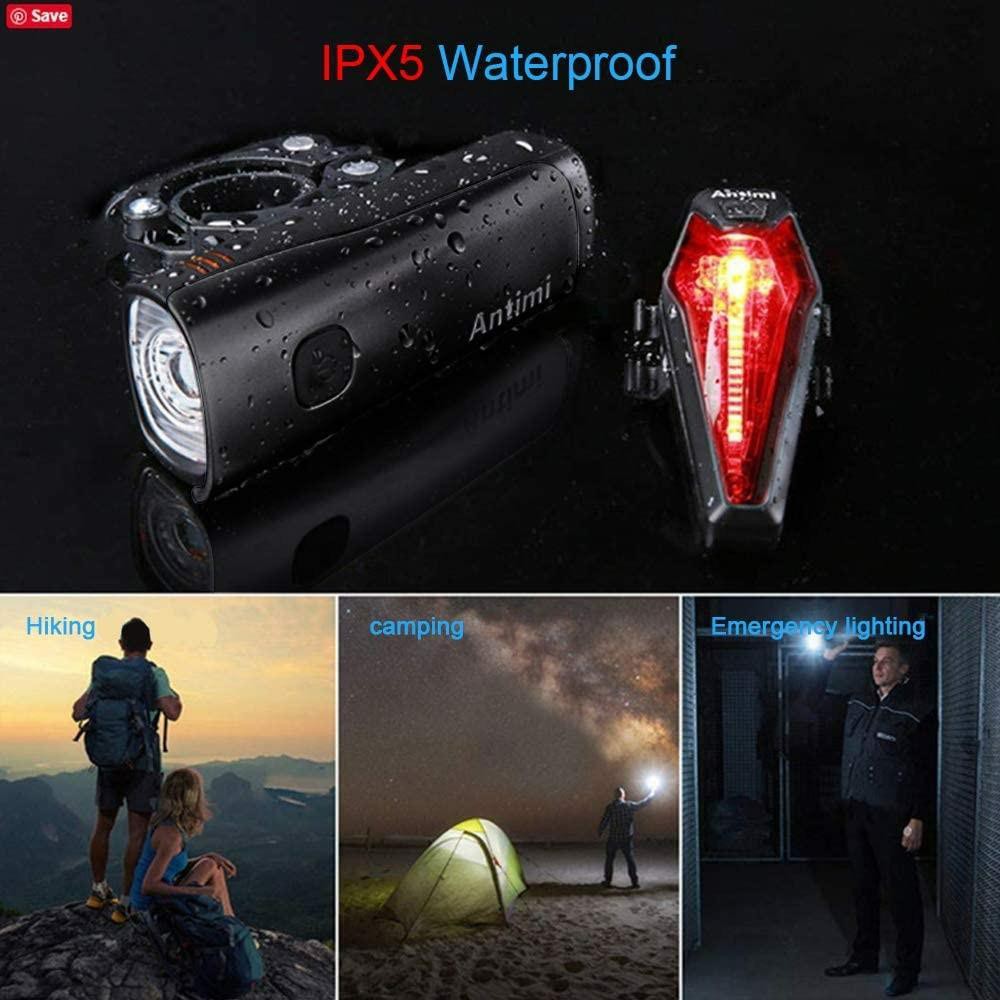 antimi usb rechargeable bicycle light set with 2 light modes waterproof for night drivers cycling and camping amazon co uk sports outdoors