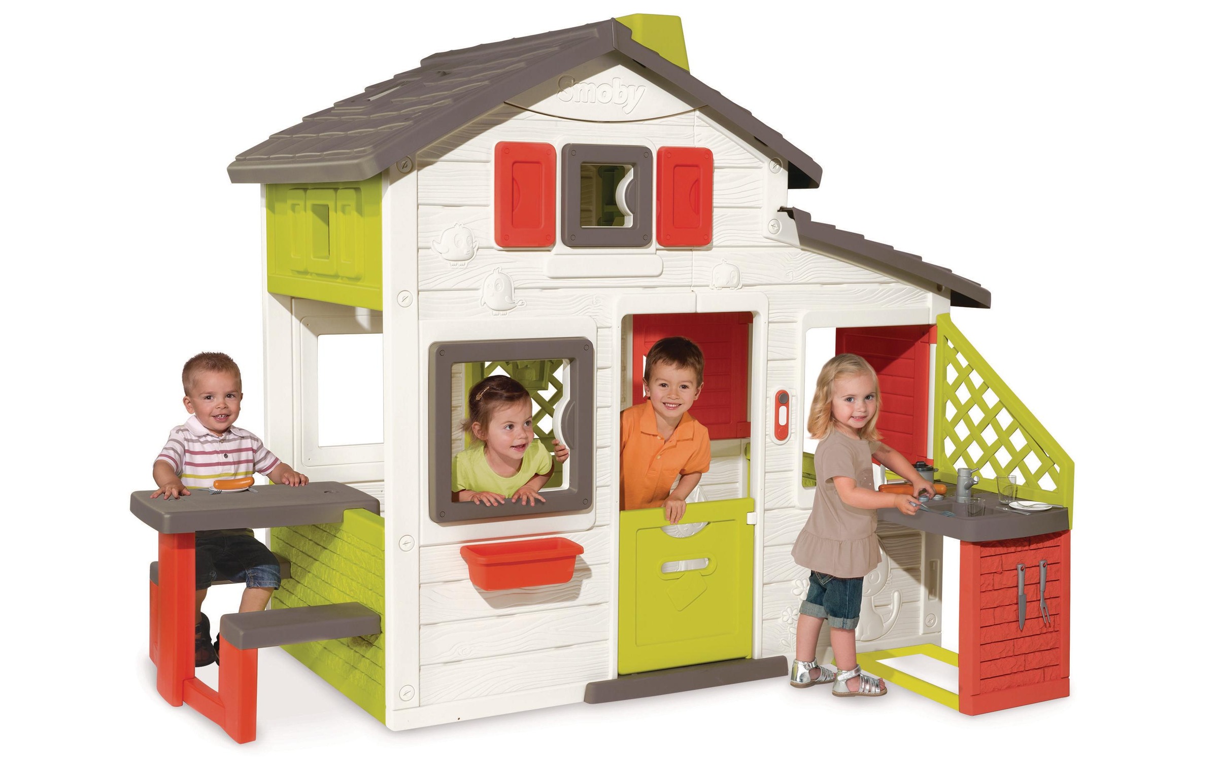 smoby neo friends haus spielhaus fur kinder fur drinnen und draussen erweiterbar durch zubehor gartenhaus fur jungen und madchen ab 3 jahren amazon de spielzeug